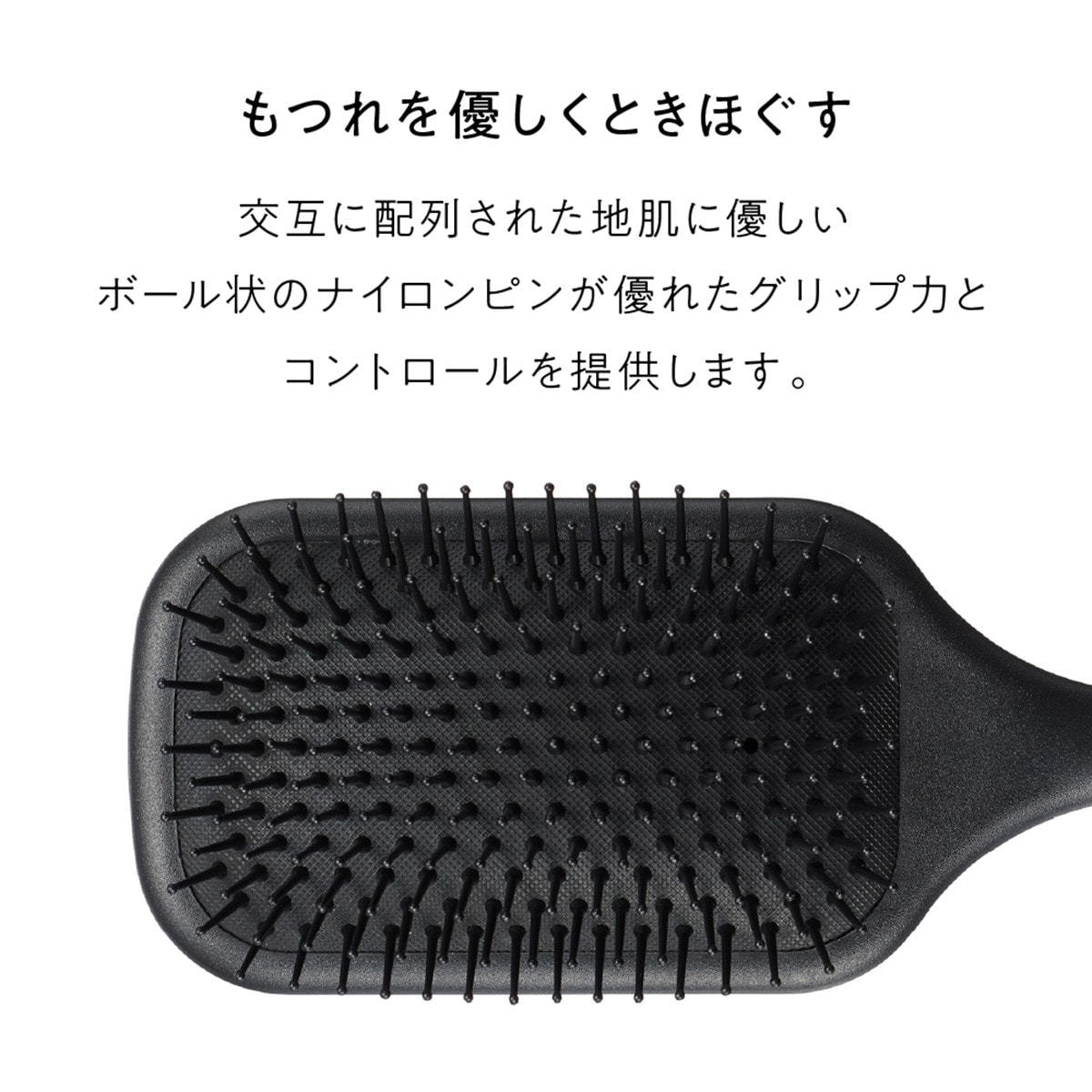 先丸のナイロンピンで、頭皮マッサージもでき、絡まる髪の毛もクッションが凹むことで引っ張りません。