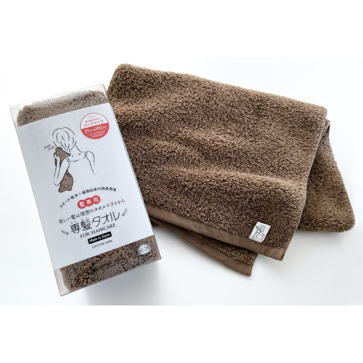 商品名:専髪タオル ブラウン(33×100cm)《日本アトピー協会推薦品》